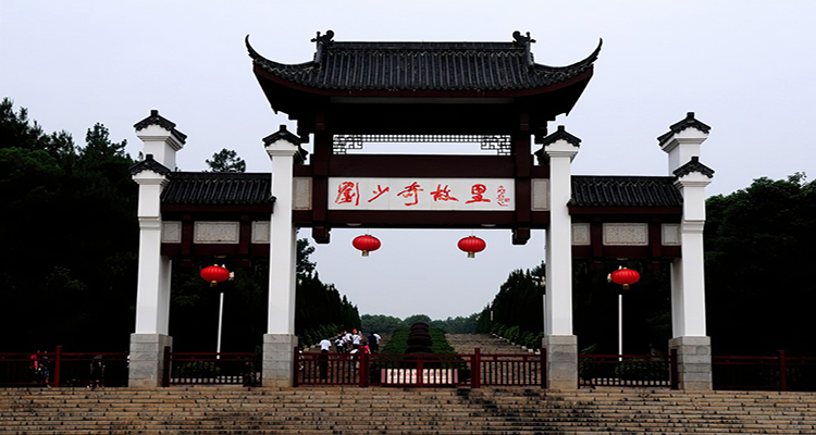 1988年11月24日,劉少奇誕辰90周年之際落成的劉少奇銅像廣場占地面積8000多平方米(包括踏步)。兩邊山頭青松傲立,綠樹掩映。廣場正前方有一個平臺,平臺中央矗立著劉少奇銅像。劉少奇銅像由中華全國總工會捐建,著名雕塑大師劉開渠及弟子程允賢精心制作。銅像加底座共高7.1米,其中像高3.0米,座高4.1米。這個數(shù)字包含著兩層含義:第一,“七一”是黨的生日,劉少奇同志一生致力于黨的建設(shè),為黨和人民的事業(yè)付出了畢生的精力,是黨和國家的卓越領(lǐng)導(dǎo)人。第二,劉少奇同志享年71歲。銅像座西北朝東南,面部神情威嚴中帶著微笑,滿懷滄桑地眺望遠方,再現(xiàn)了作為黨和國家主要領(lǐng)導(dǎo)人之一的劉少奇風塵仆仆、日理萬機的光輝形象,使人油然而生一種敬意和親切感。