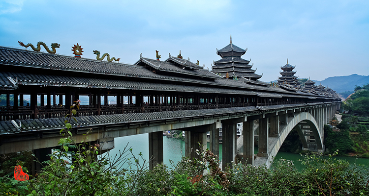 風雨橋(又稱“花橋”)橫跨溪流,既是交通要道,也是侗族人乘涼、對歌、社交的場所,橋身雕刻精美,充滿藝術氣息。
