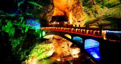 黃龍洞是張家界武陵源風(fēng)景名勝中著名的溶洞景點(diǎn),因享有“世界溶洞奇觀”“世界溶洞全能冠軍”“中國(guó)最美旅游溶洞”等頂級(jí)榮譽(yù)而名震全球?,F(xiàn)已探明洞底總面積10萬(wàn)平方米;洞體共分四層,洞中有洞、洞中有山、山中有洞、洞中有河。經(jīng)中外地質(zhì)專家考察認(rèn)為:黃龍洞規(guī)模之大、內(nèi)容之全、景色之美,包含了溶洞學(xué)的所有內(nèi)容。黃龍洞以其龐大的立體結(jié)構(gòu)洞穴空間、豐富的溶洞景觀、水陸兼?zhèn)涞挠斡[觀光線路獨(dú)步天下。