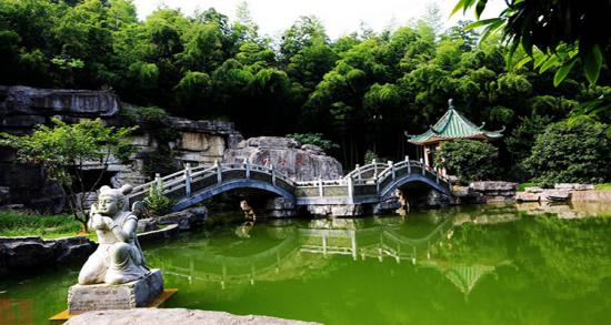 蘇仙嶺從山麓到山頂有桃花居、白鹿洞、三絕碑、景星觀、八字銘、沉香石、蘇仙觀等觀賞游覽處。桃花居是游客登山的起點,它面向桃花水溪,四周翠竹修茂,環(huán)境幽雅別致。白鹿洞在