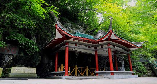 桃花居上方。洞內寬敞,洞頂一般來說巖突,怪石猙獰,洞外藤葛披拂,叢林繁茂。傳說白鹿、白鶴在此為蘇耽哺乳、御寒。