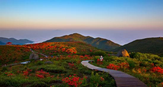 初春,大圍山萬物復(fù)蘇,滿山翠綠、繁花似錦,可觀千畝櫻花、賞萬畝杜鵑,游十里桃花,聞鳥語花香,聽流水歡歌。盛夏,大圍山空氣清新,氣候宜人,這里年平均氣溫僅16.8°,是您感受激情漂流,品嘗甜美水果和休閑避暑勝地。金秋,佇立七星頂峰,極目遠(yuǎn)眺,群山莽莽、層林盡染,晨觀日出,晚賞落霞,高山壯麗景色盡收眼底,使人心曠神怡,豪情滿懷。嚴(yán)冬,大圍山漫山玉樹瓊枝、銀妝素裹,霧淞冰掛,美不勝收,使人恍若進(jìn)入到童話般的世界。